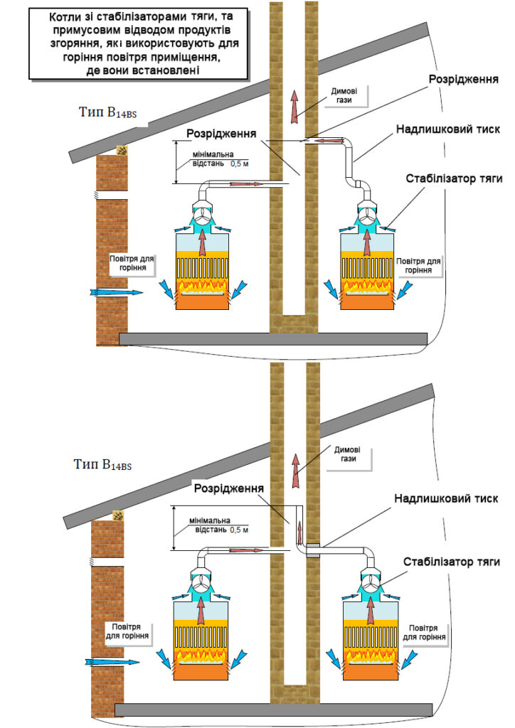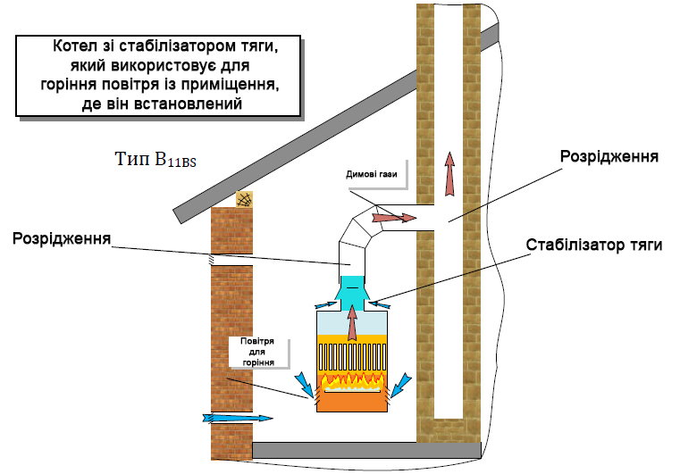 The scheme of air intake and withdrawal of products of combustion is provided on figure 1.