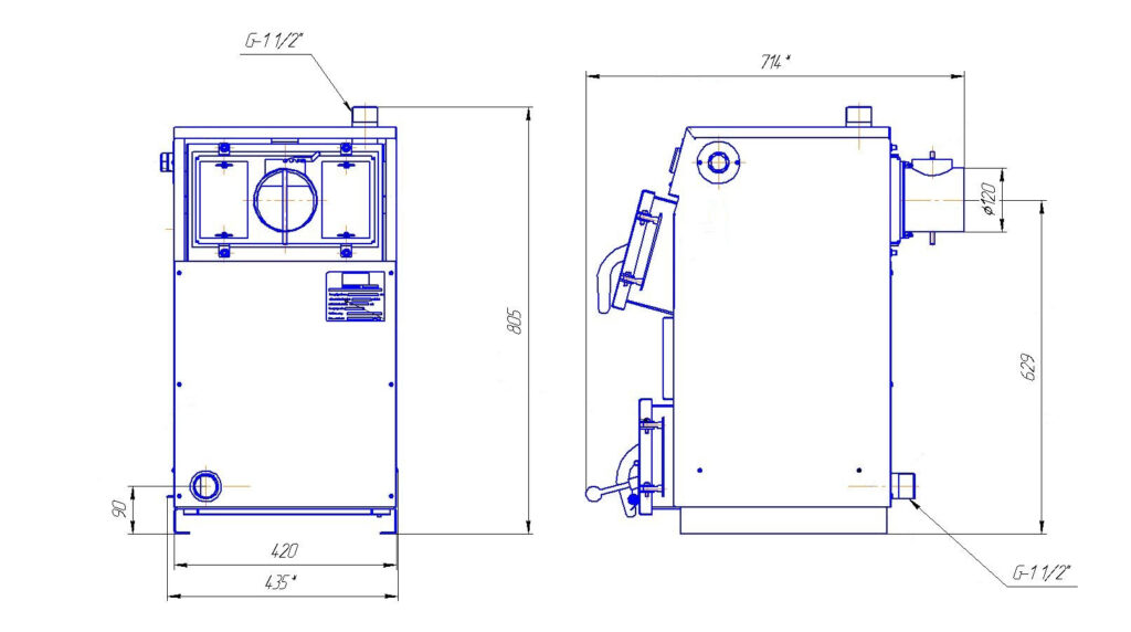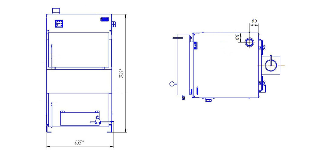 The mechanical draft regulator connection is possible. The draft regulator operates air intake process for fuel combustion, depending on heat carrier temperature. Thereby, it protects the copper from overheating.